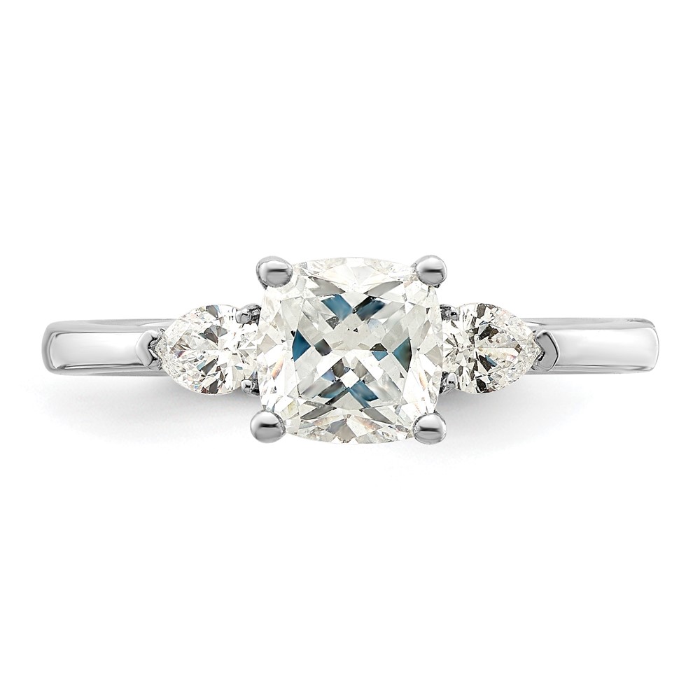 14k White Gold 3 Stone Pear/Cushion Semi-Mount Including 2-Pear Side Stones Dia Ring