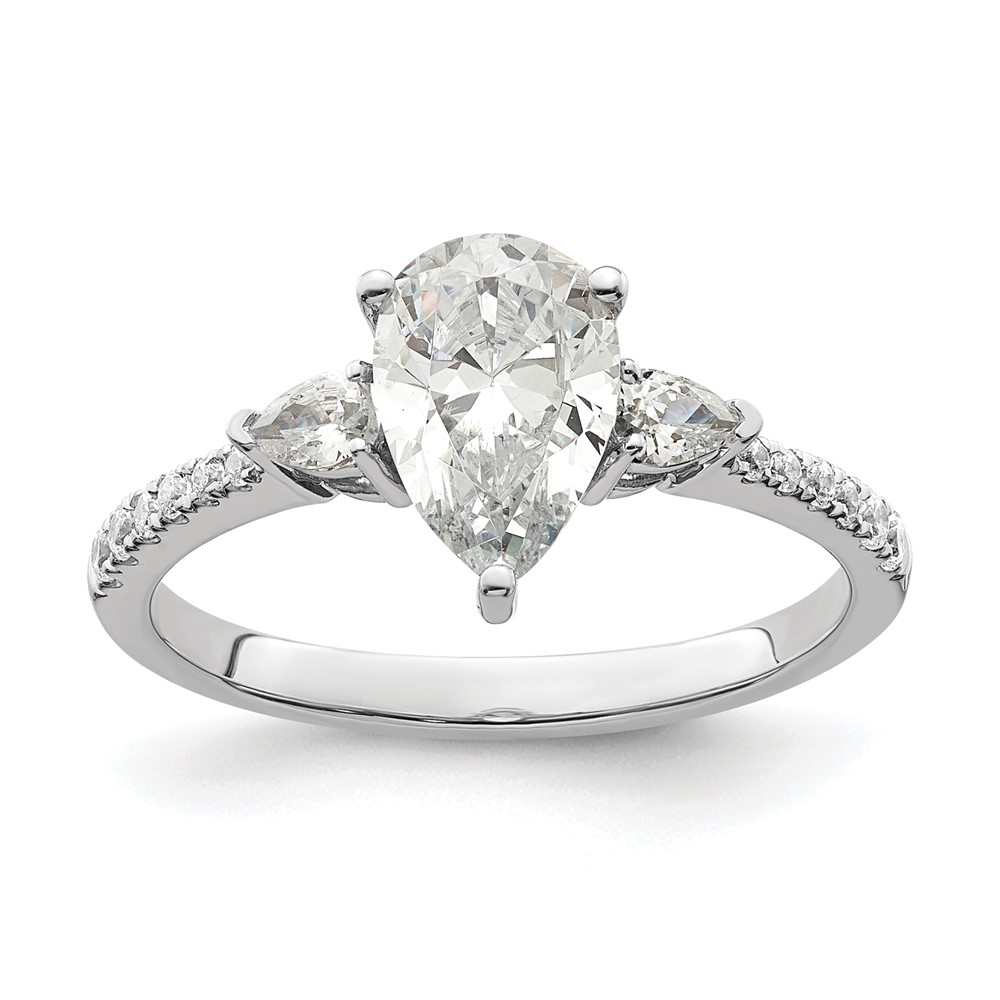 14k White Gold 3 Stone Pear/Pear Center Semi-Mount Including 2-Pear Side Stones Dia Ring