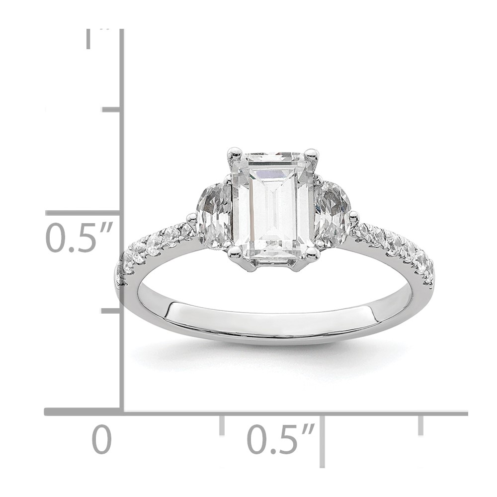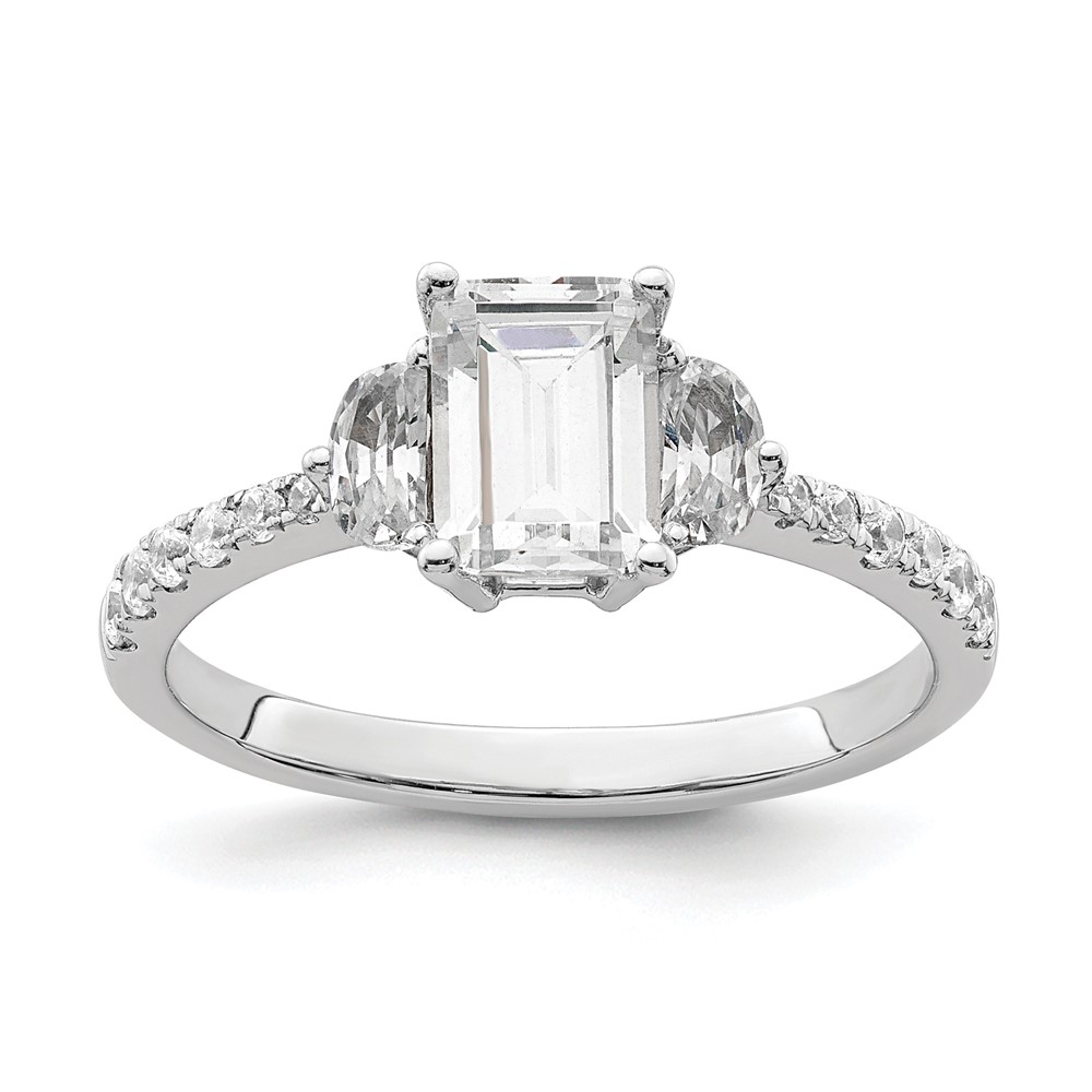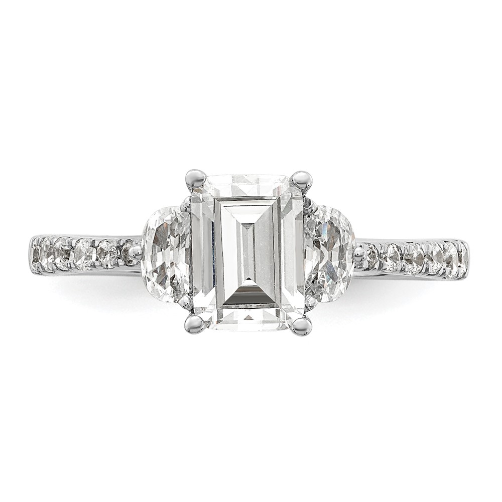 14k White Gold 3 Stone Half Moon/Emerald Semi-Mount Including 2-Half Moon Side Stones Dia Ring