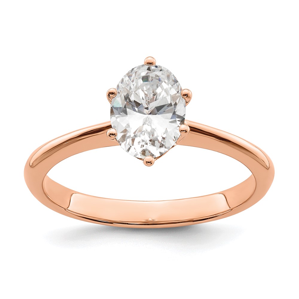 14k Rose Gold (Holds 1 carat (7x5mm) Oval) 6-Prong with .02 carat Diamond Leaf Design Semi-Mount Engagement Ring