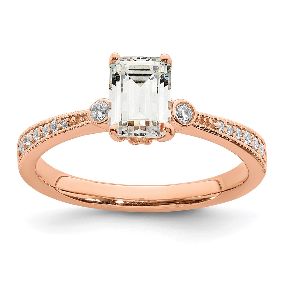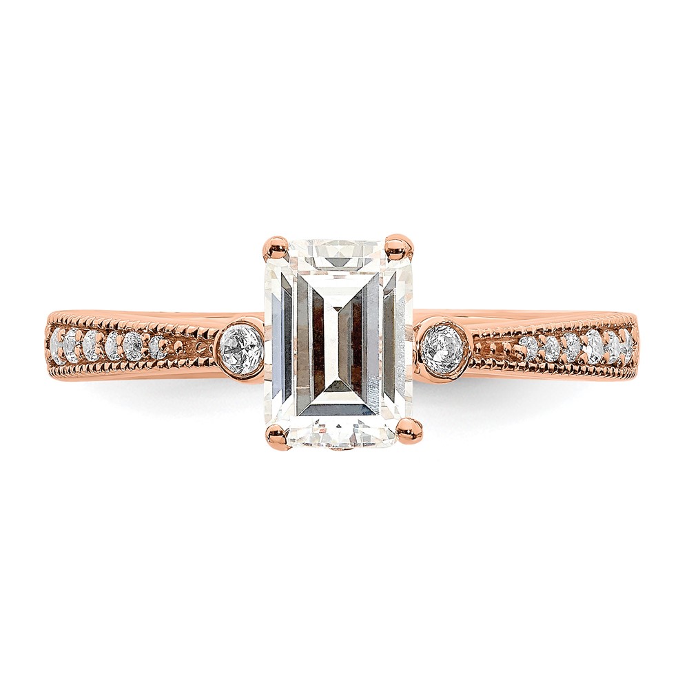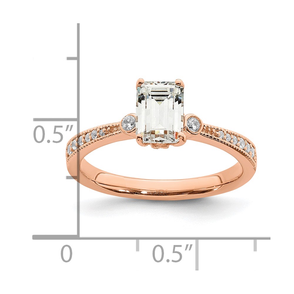 14k Rose Gold (Holds 1 carat (6.9x5.2mm) Emerald-cut Center) 1/15 carat Diamond Semi-Mount Engagement Ring