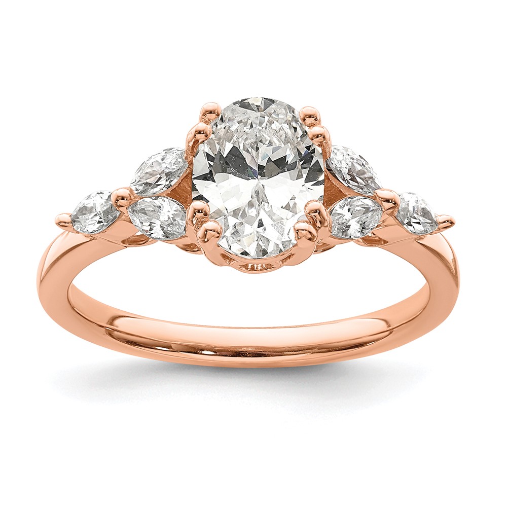 14k Rose Gold (Holds 1 carat (8.00x6.1mm) Oval Center) 1/5 carat Marquise Diamond Semi-Mount Engagement Ring