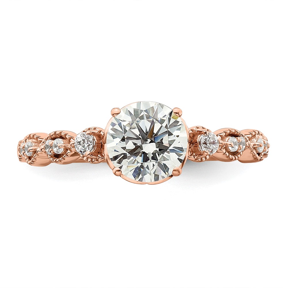 14k Rose Gold (Holds 1 carat (6.5mm) Round Center) 1/8 carat Diamond Semi-Mount Engagement Ring