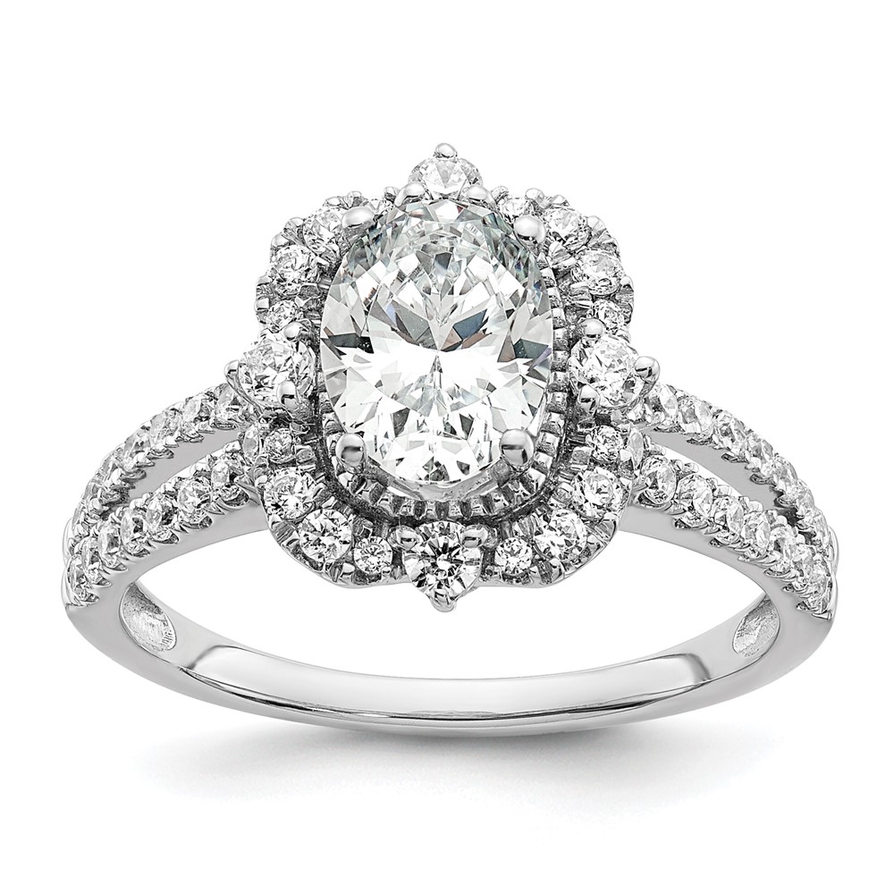14k White Gold Vintage Halo (Holds 1 carat (8.0x6.1mm) Oval Center) 5/8 carat Diamond Semi-Mount Engagement Ring