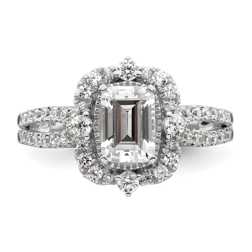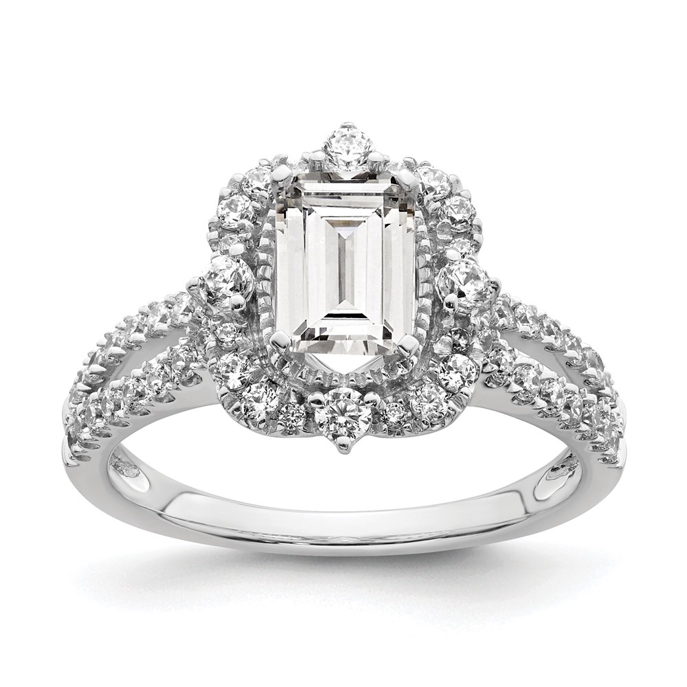 14k White Gold Vintage Halo (Holds 1 carat (6.9x5.2mm) Emerald-cut Center) 5/8 carat Diamond Semi-Mount Engagement Ring