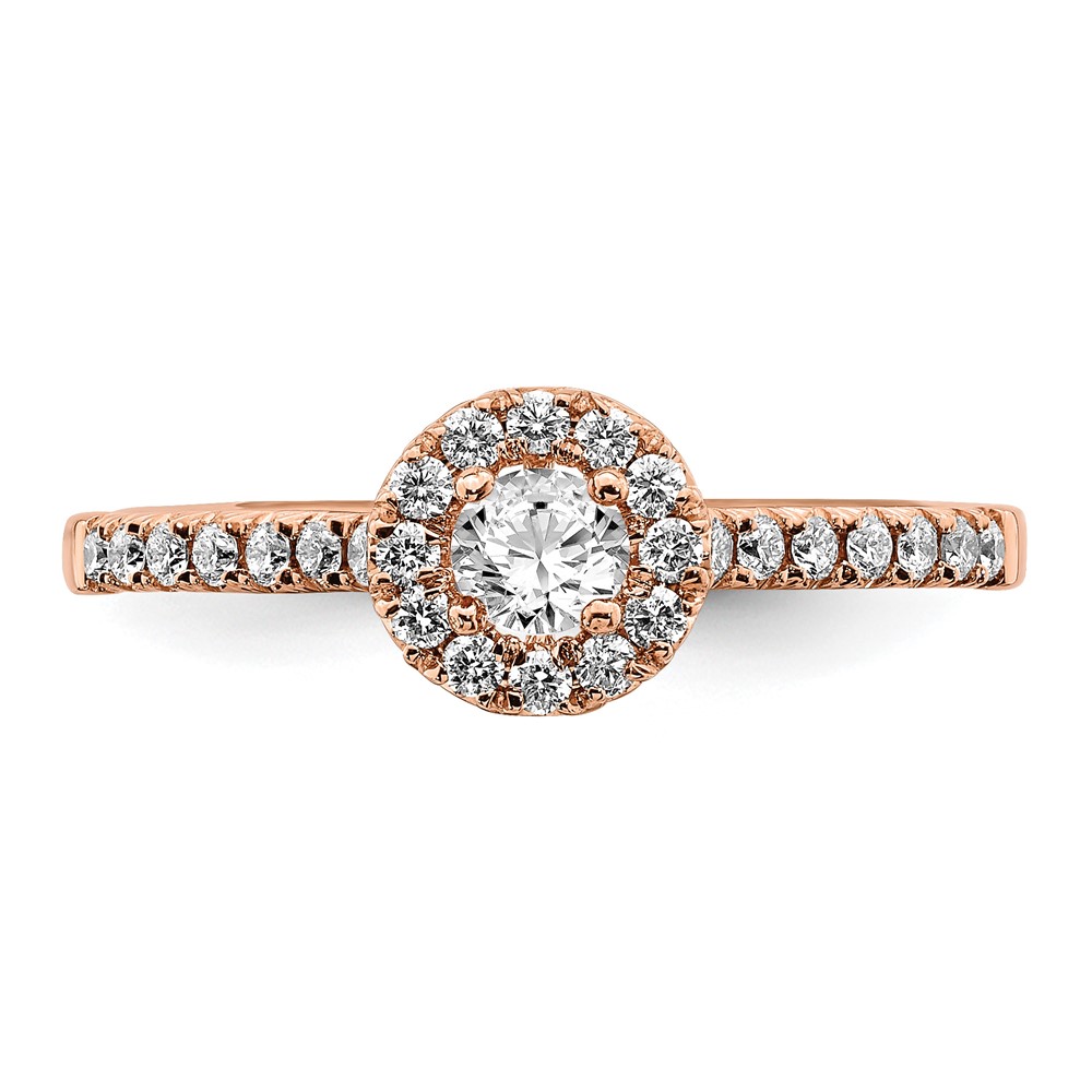 14k Rose Gold 3/4 carat Lab Grown Diamond VS/SI+ G+ Round Complete Halo Engagement Ring