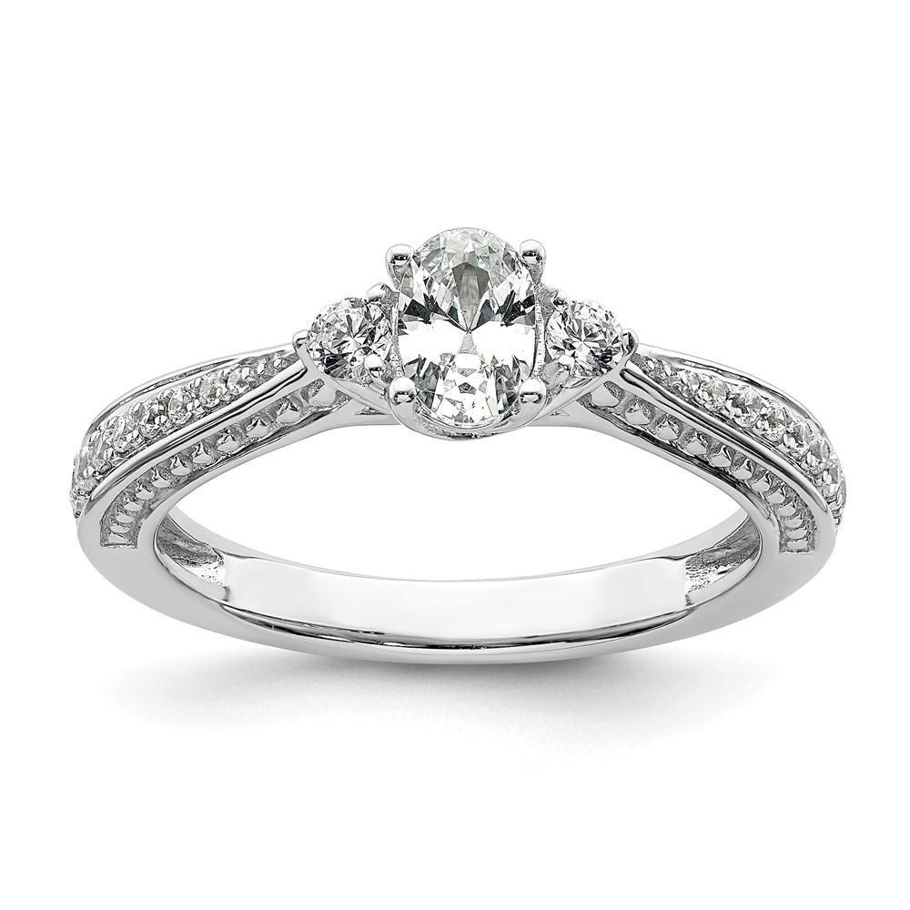 14k White Gold (Holds 1.5 carat (9.2x6.9mm) Oval Center) 1/3 carat Diamond Semi-Mount Engagement Ring