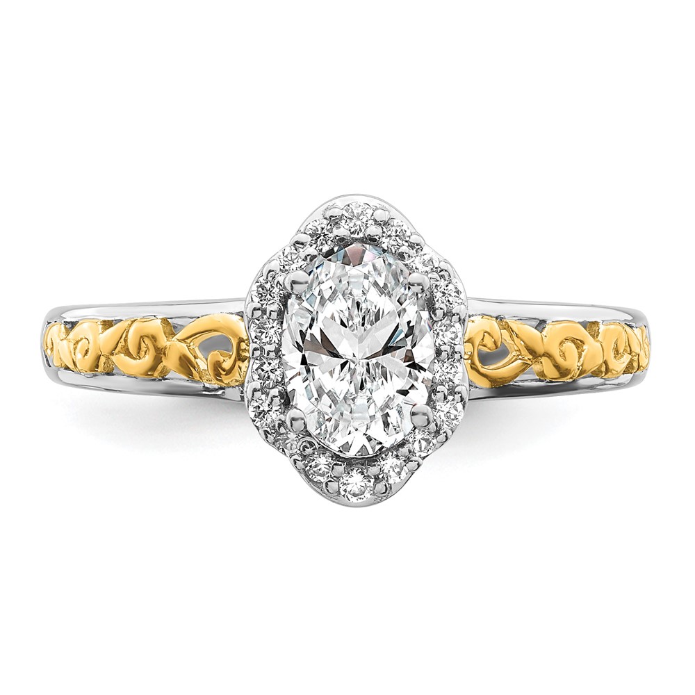14k Two-tone Oval Vintage Halo Semi-Mount Engagement Ring