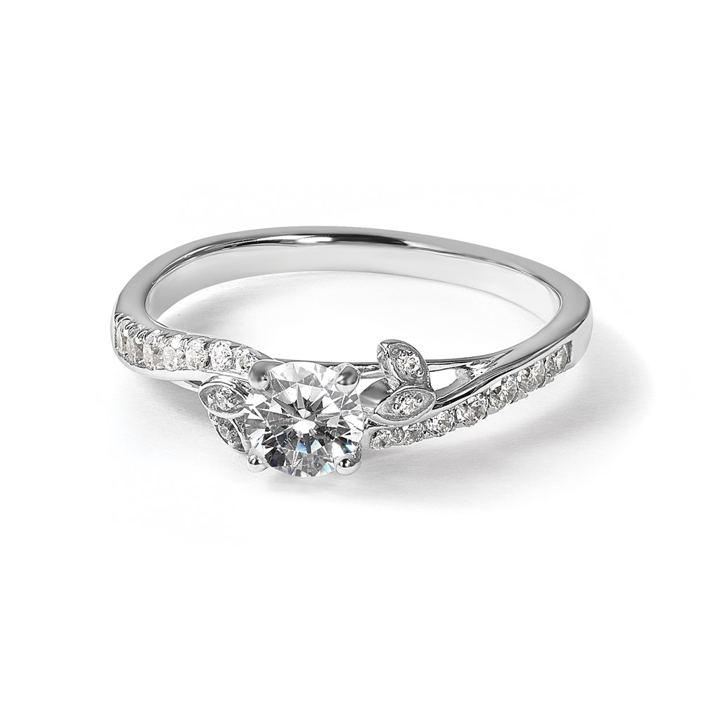 14k White Gold leaf Design Diamond Semi-Mount Engagement Ring