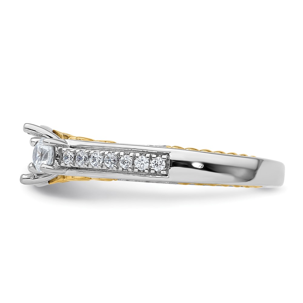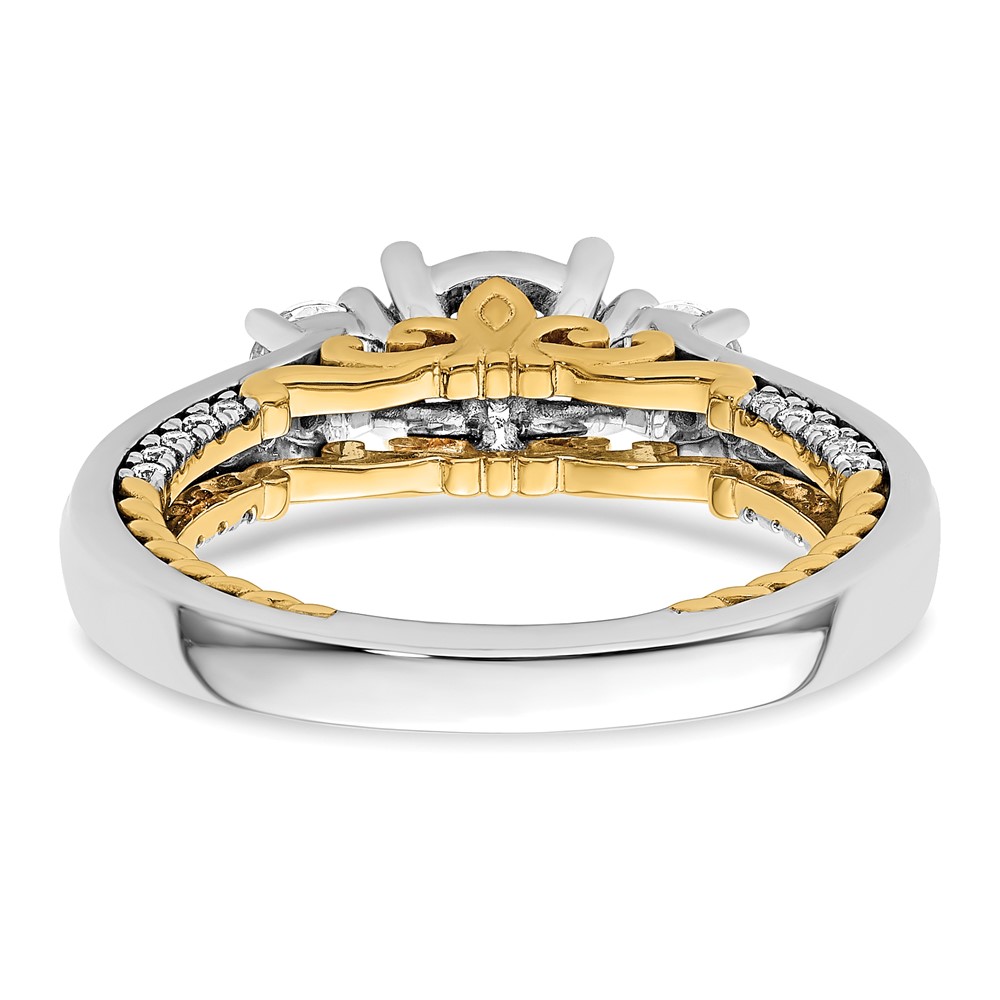 14k Two-tone Three Stone Semi-Mount Including 2-3.5mm Side Stones Engagement Ring