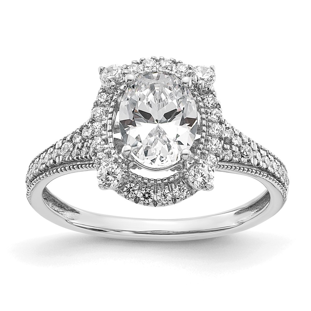 14k White Gold Vintage 1ct Oval Halo Dia Semi-Mount Ring
