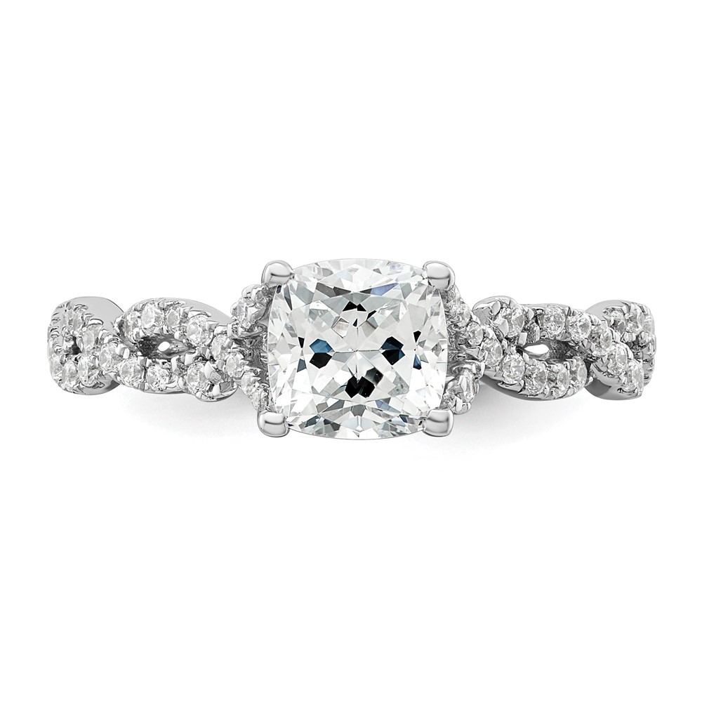 14k White Gold Semi-Mount Diamond Cushion Center Twist Engagement Ring