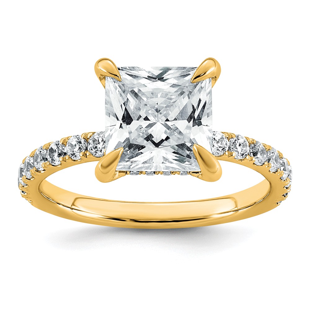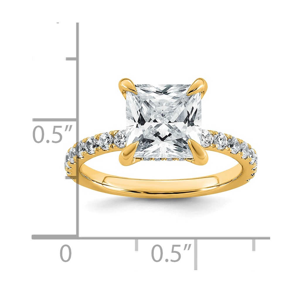 14k 3 1/2 carat Certified Lab Grown Diamond VS+ F+ Princess Complete Solitaire with Flair Engagement Ring