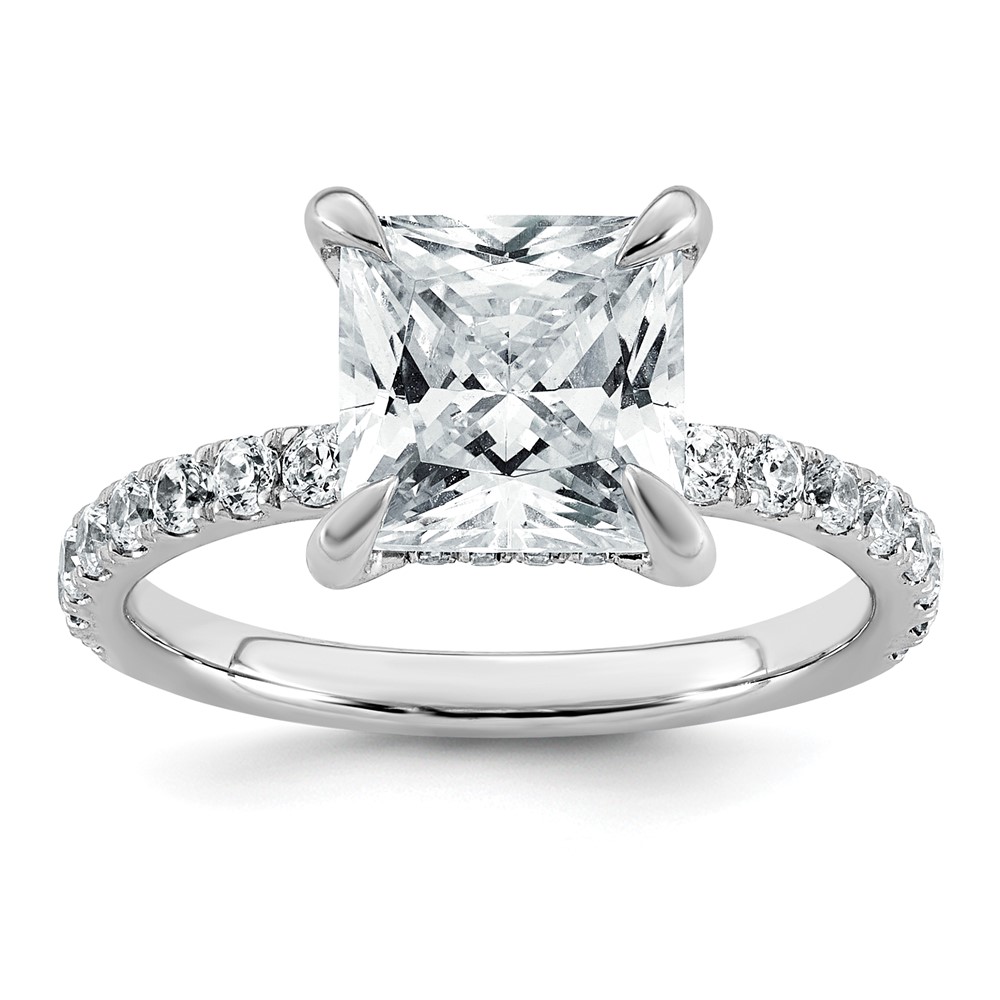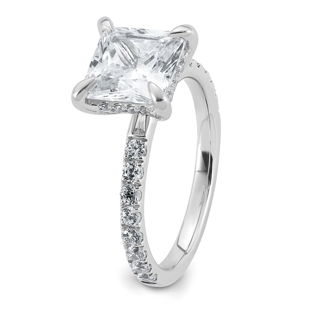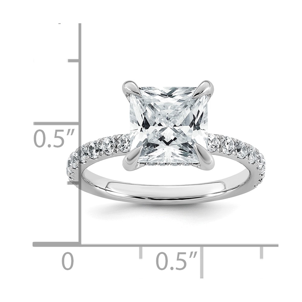 14k White Gold 3 1/2 carat Certified Lab Grown Diamond VS+ F+ Princess Complete Solitaire with Flair Engagement Ring