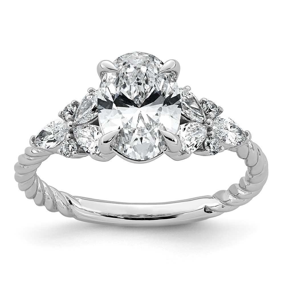 14kw 2ct Cert Oval Center Lab Grown Dia VS+ F+ Comp Ring