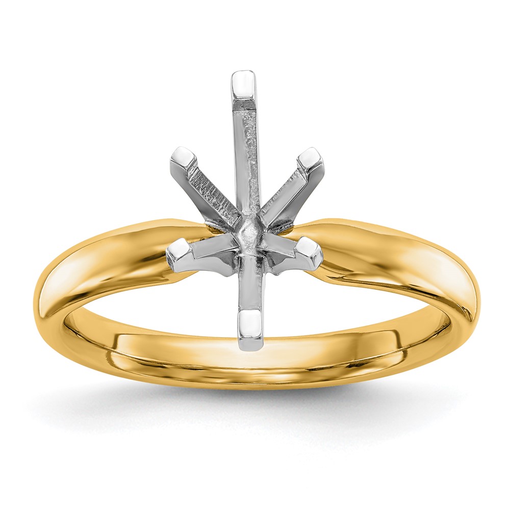 14k Two-Tone 5/8 carat Lightweight Knife Edge/Half-Round 6-Prong Round Solitaire Ring Mounting