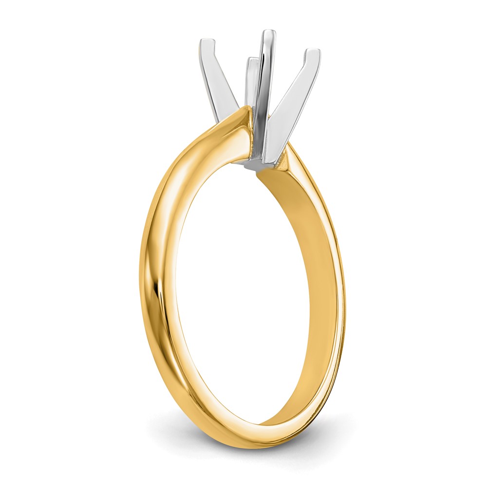14k Two-Tone 2 carat Medium-Weight Knife Edge/Half-Round 4-Prong Round Solitaire Ring Mounting