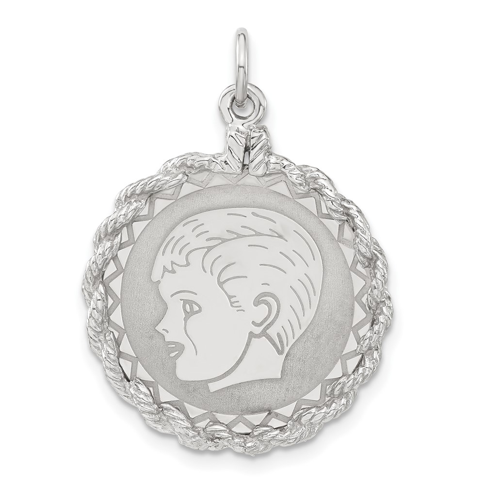 Sterling Silver Engraveable Polished Front/Satin Back Boy Disc Charm