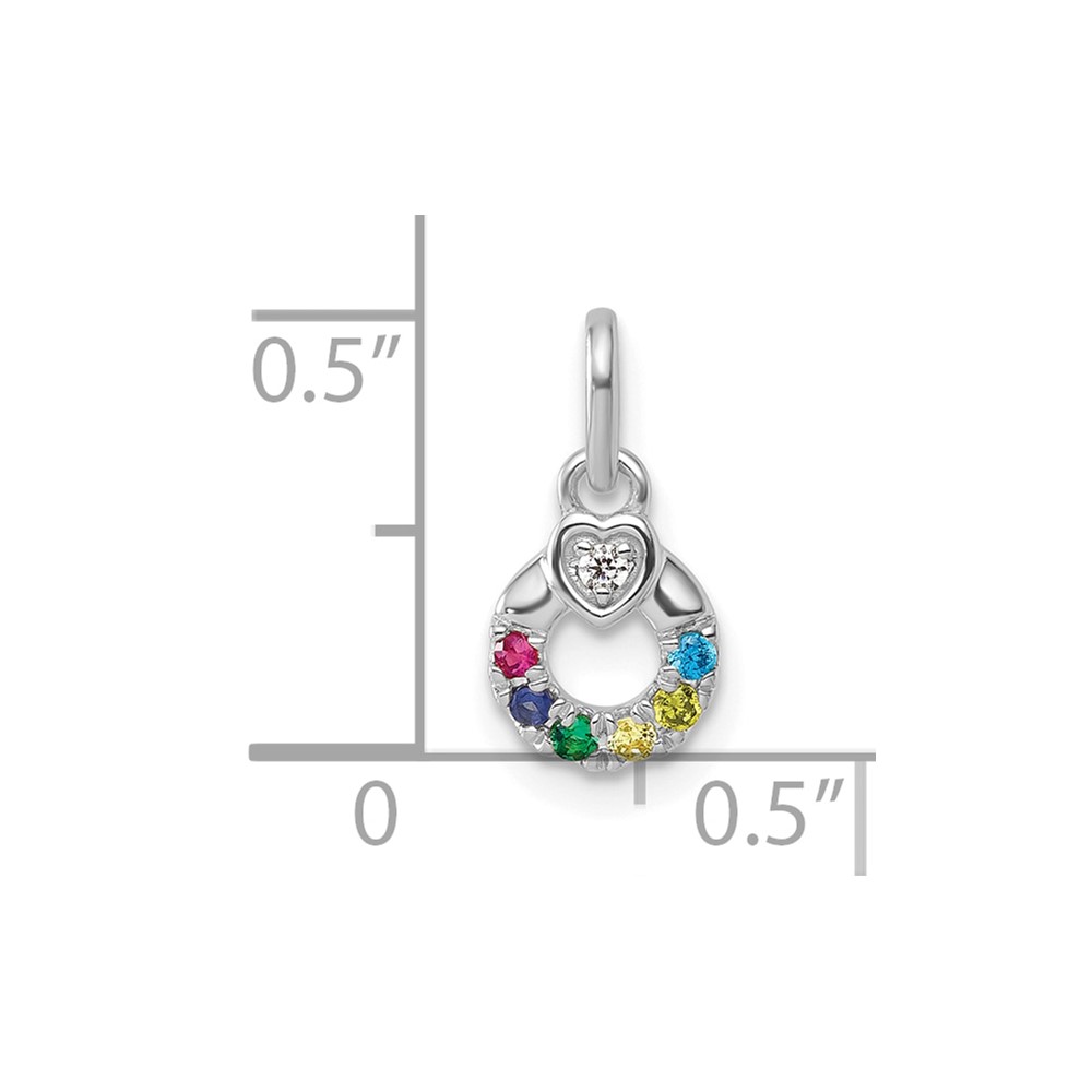 14k WG Dia. Heart w/6 Synthetic Birthstone Mother's Circle Pendant