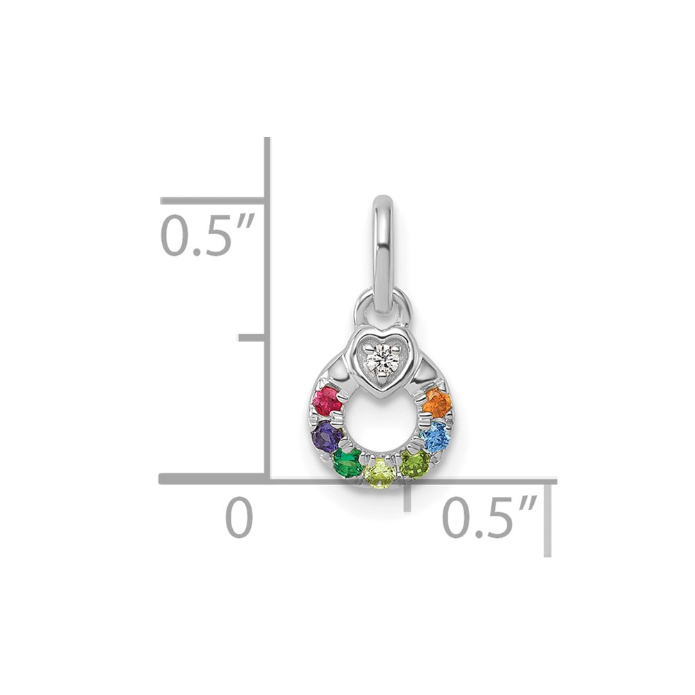 14k WG Dia. Heart w/4 Synthetic Birthstone Mother's Circle Pendant