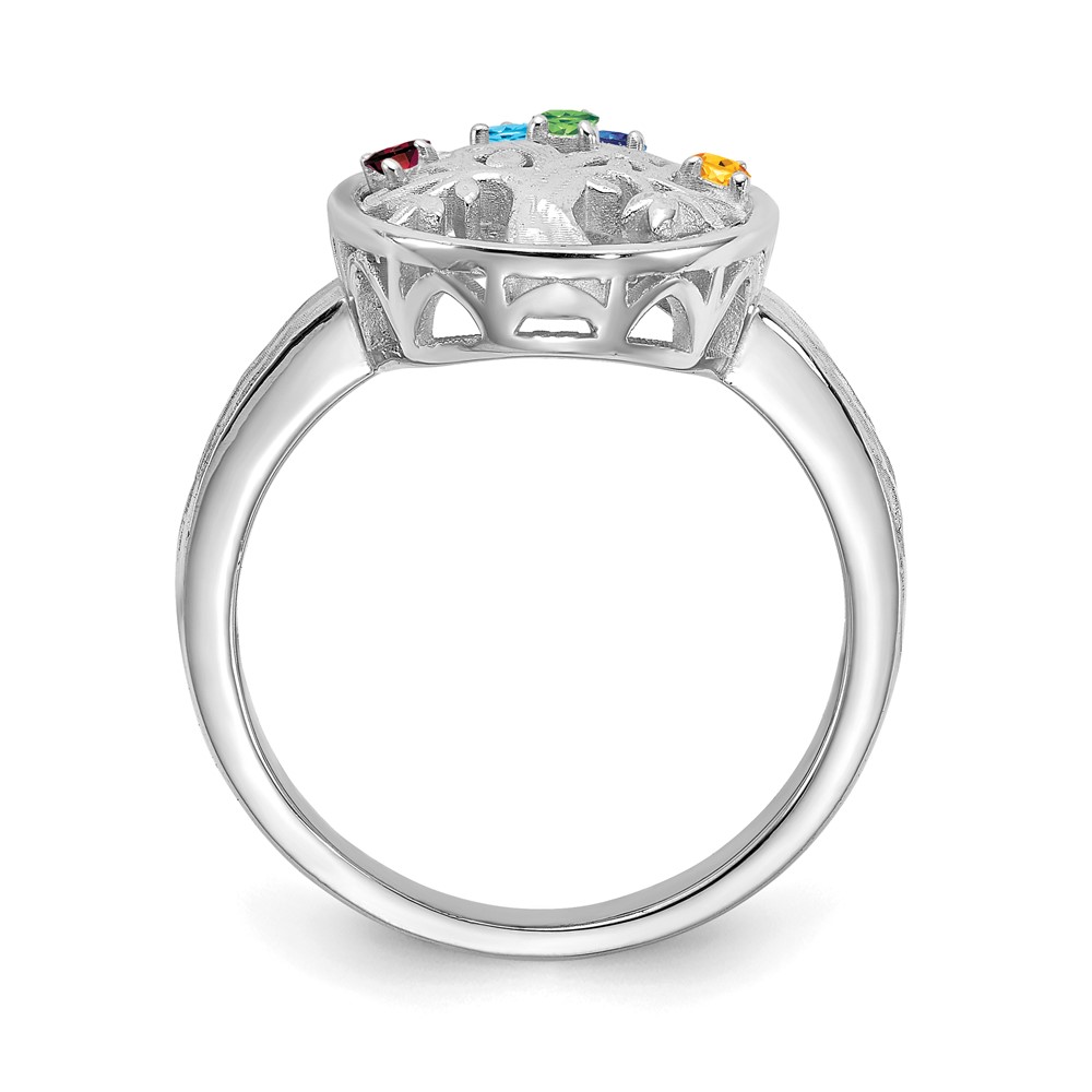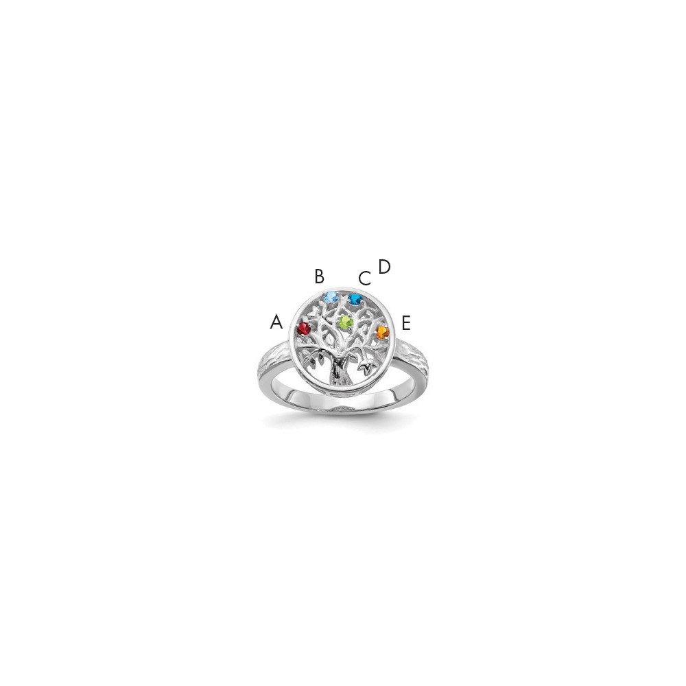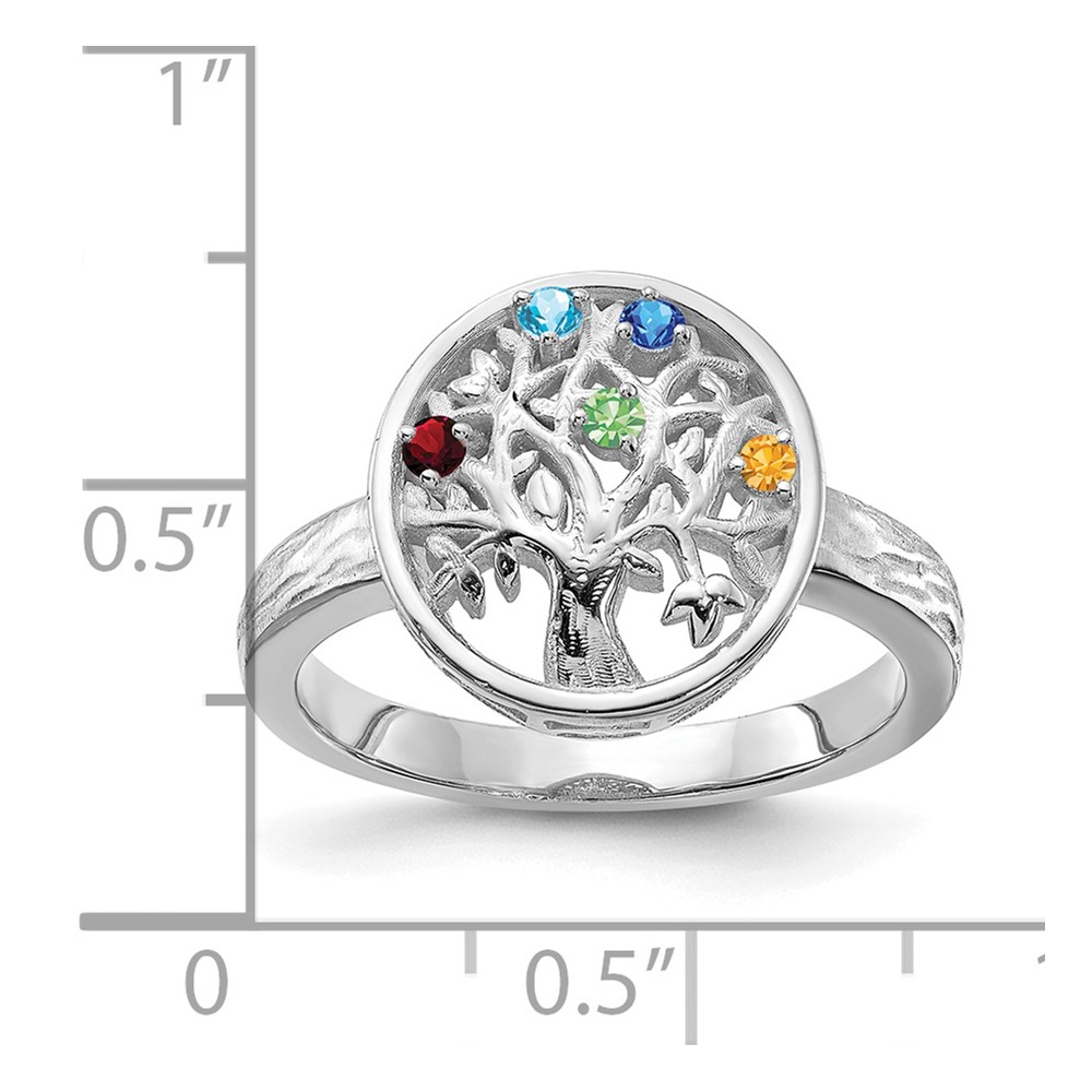 Sterling Silver Rhodium-plated Family Tree Ring with 5 Synthetic Birthstone