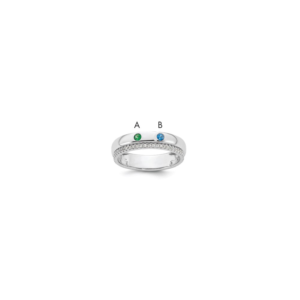 14k White Gold 2 Synthetic Birthstone and Diamond Mother's Ring