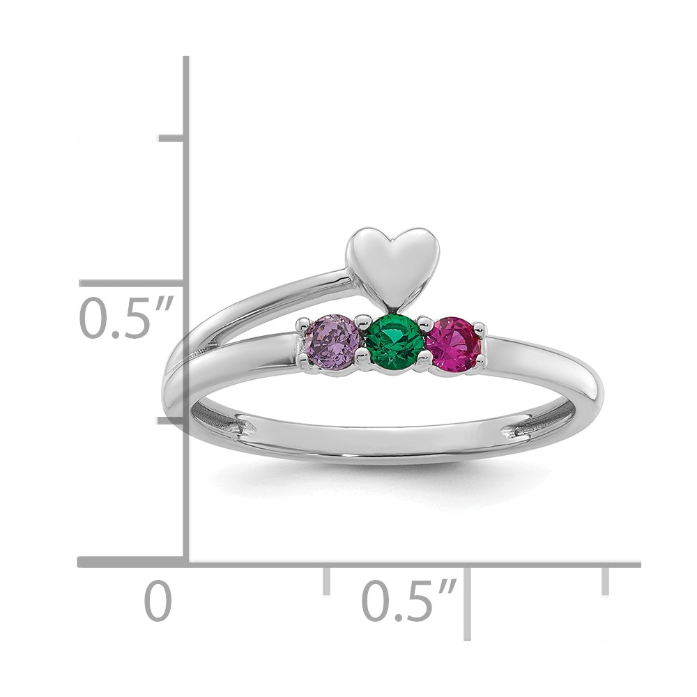14k White Gold Heart with 3 Birthstone Mother's Ring Mounting