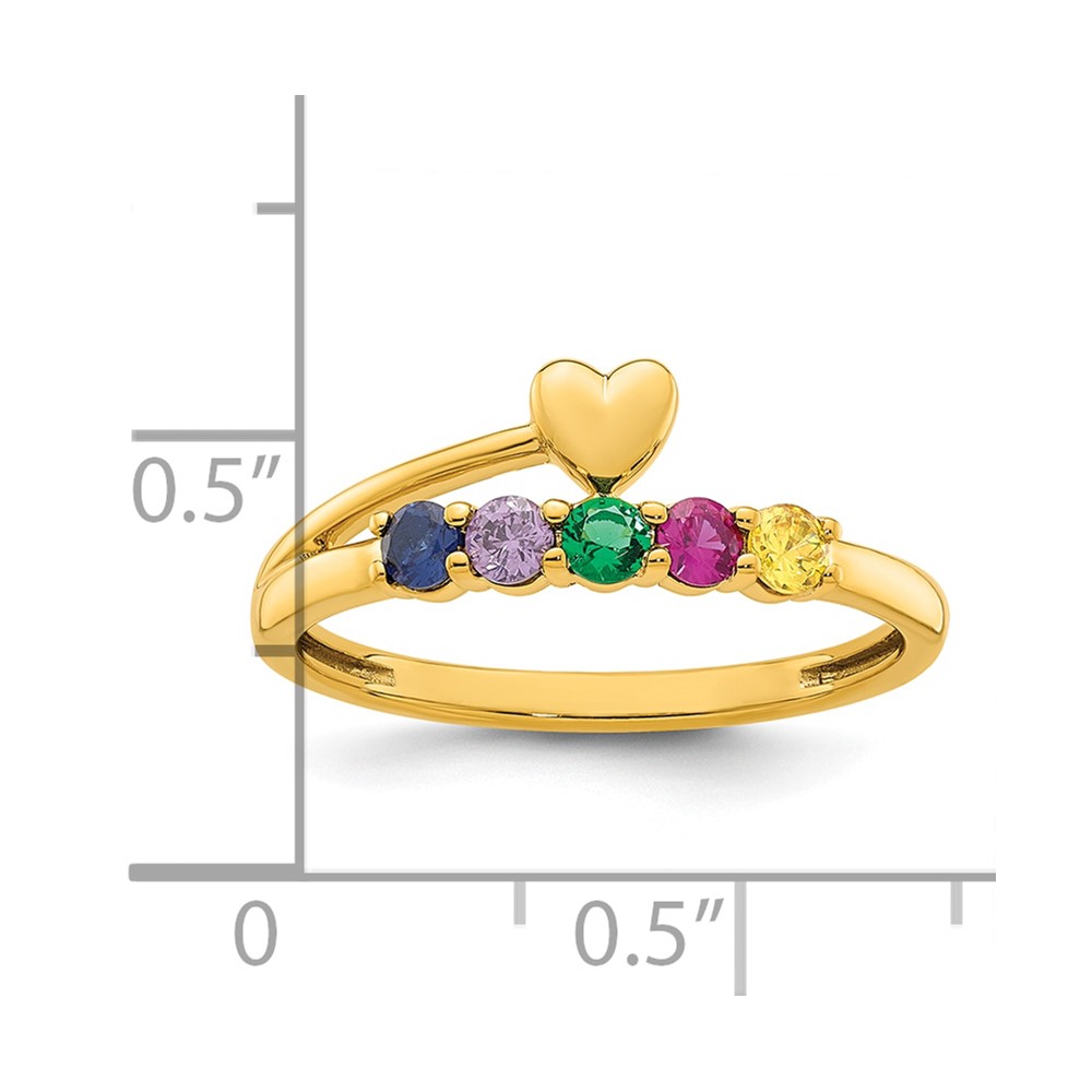 14k Heart with 5 Birthstone Mother's Ring Mounting