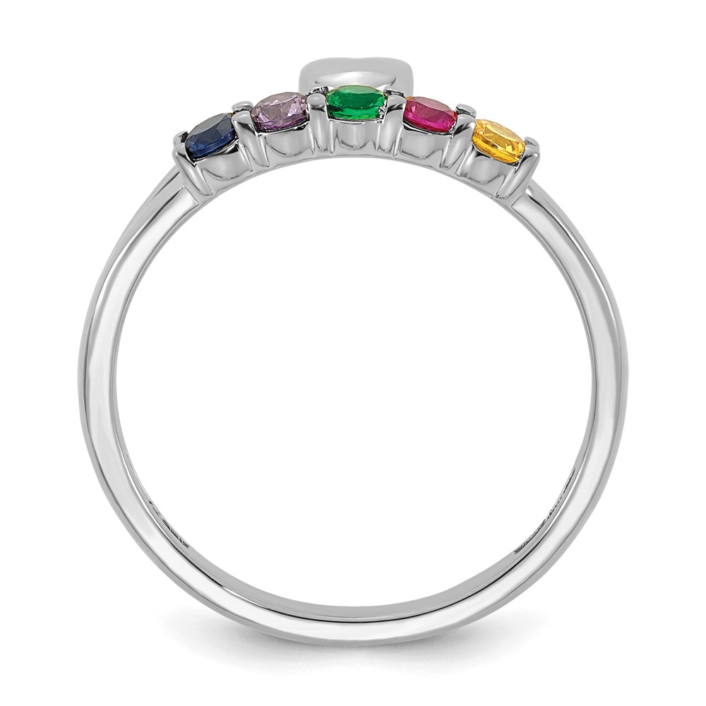 14k White Gold Heart with 5 Synthetic Birthstone Mother's Ring