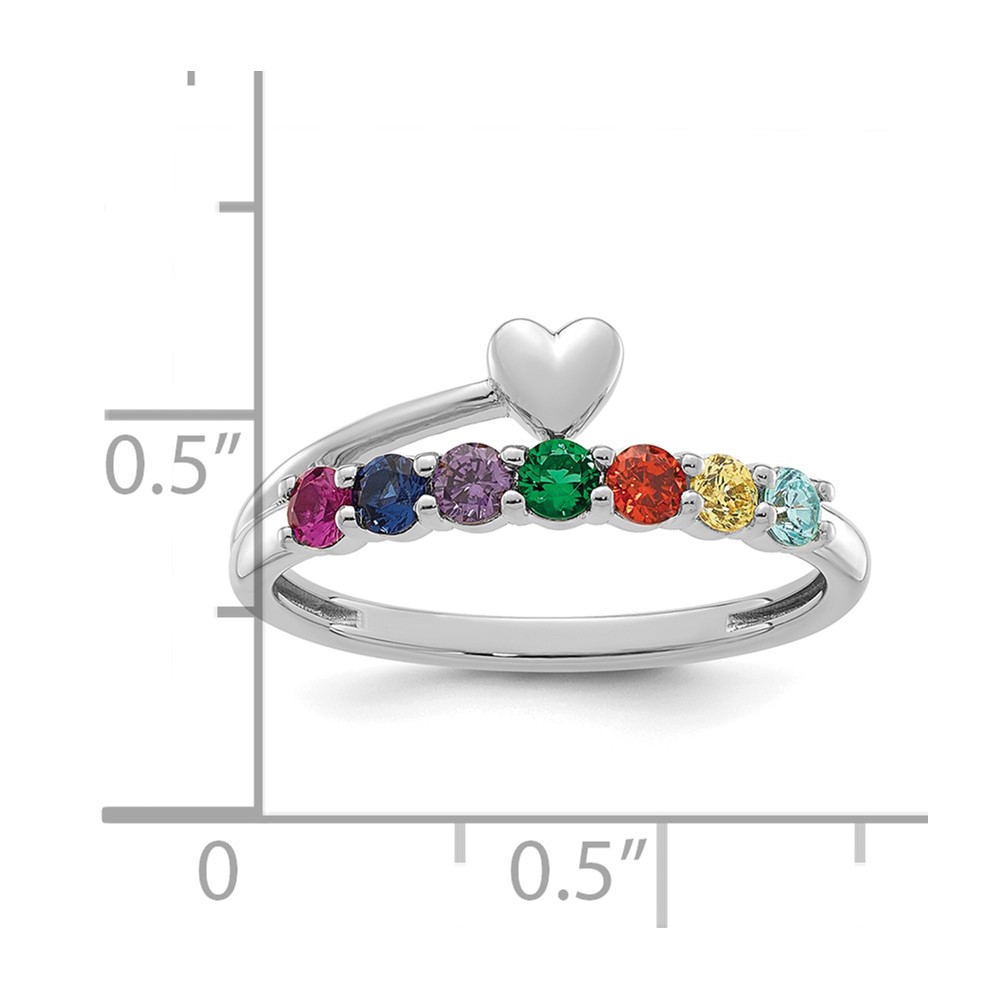 14k White Gold Heart with 7 Synthetic Birthstone Mother's Ring