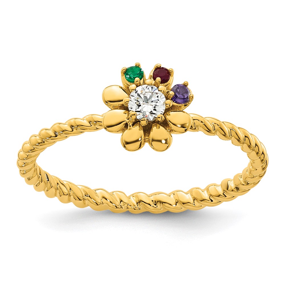 14k 3 Birthstone Flower with Diamond Mother's Ring Mounting