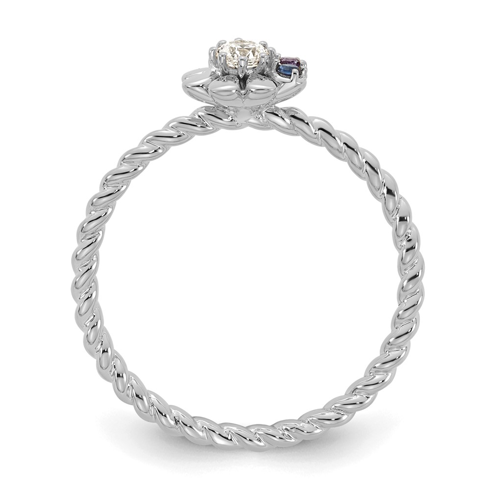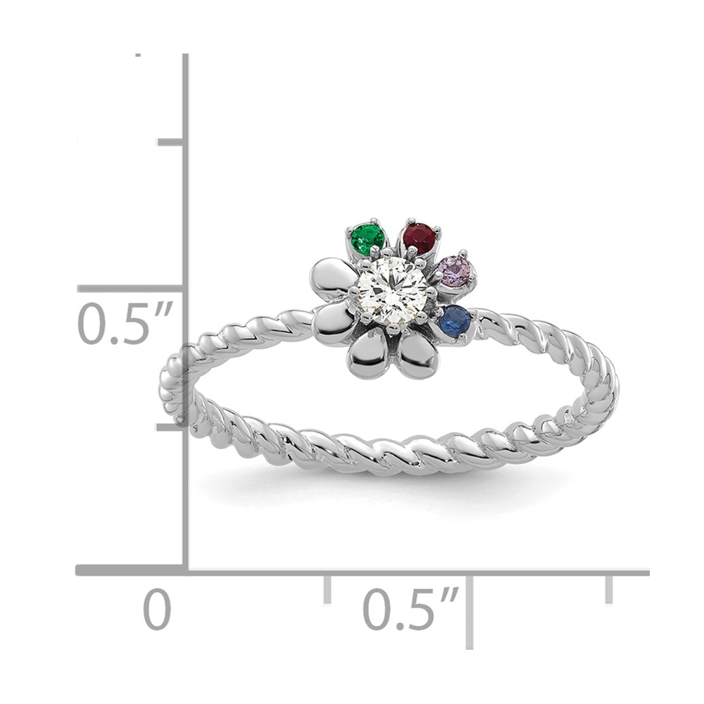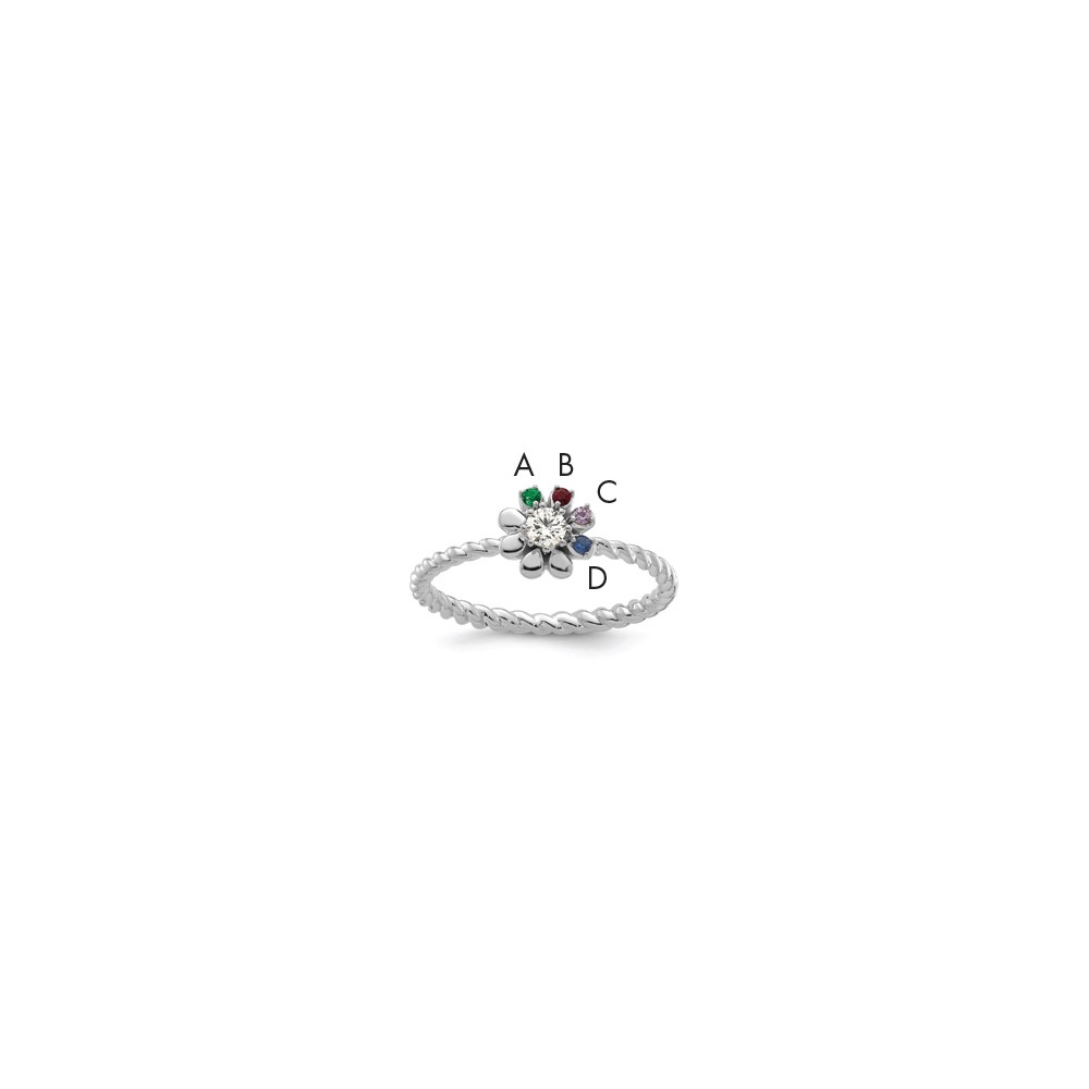 14k White Gold 4 Birthstone Flower with Diamond Mother's Ring
