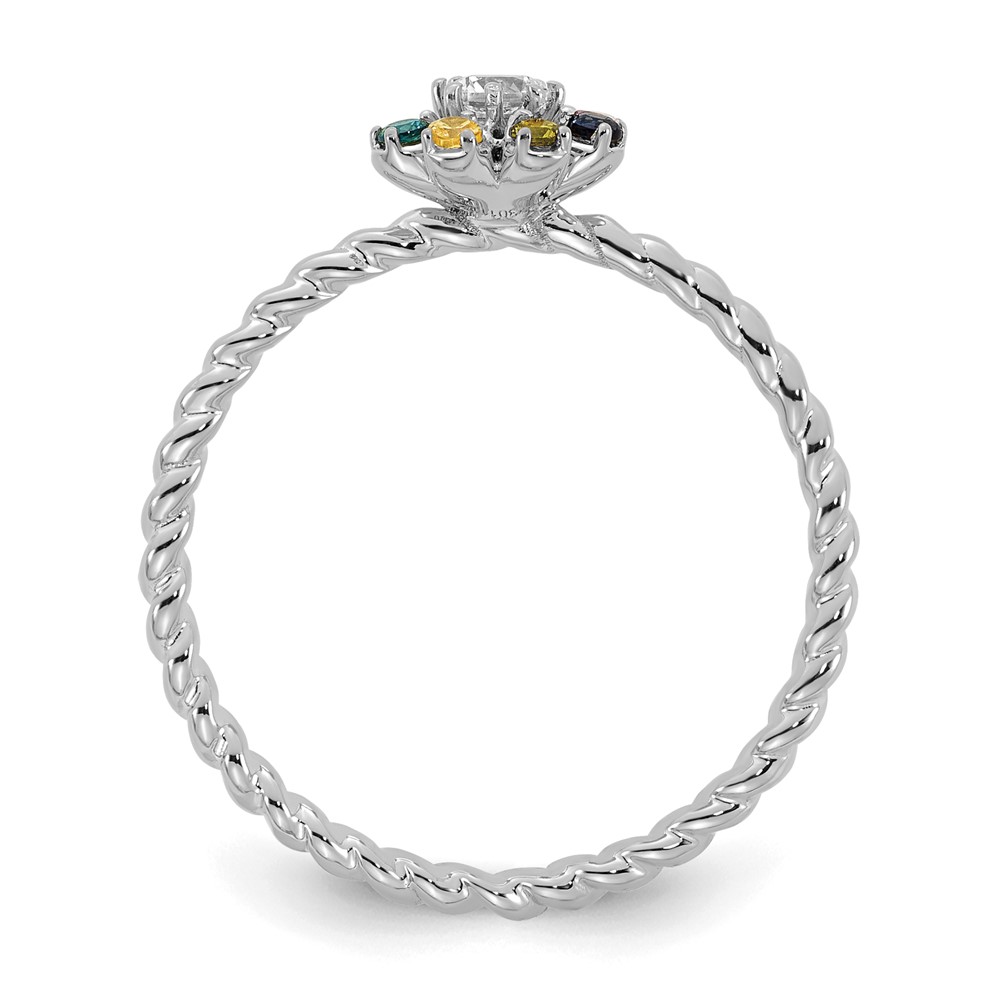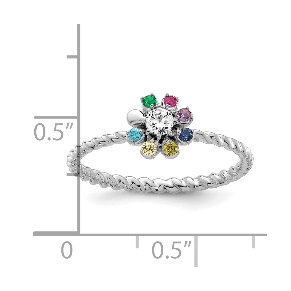 14k White Gold 7 Birthstone Flower with Diamond Mother's Ring