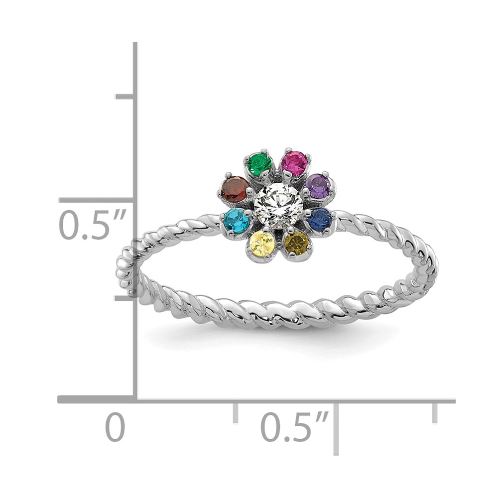 14k White Gold 8 Birthstone Flower with Diamond Mother's Ring