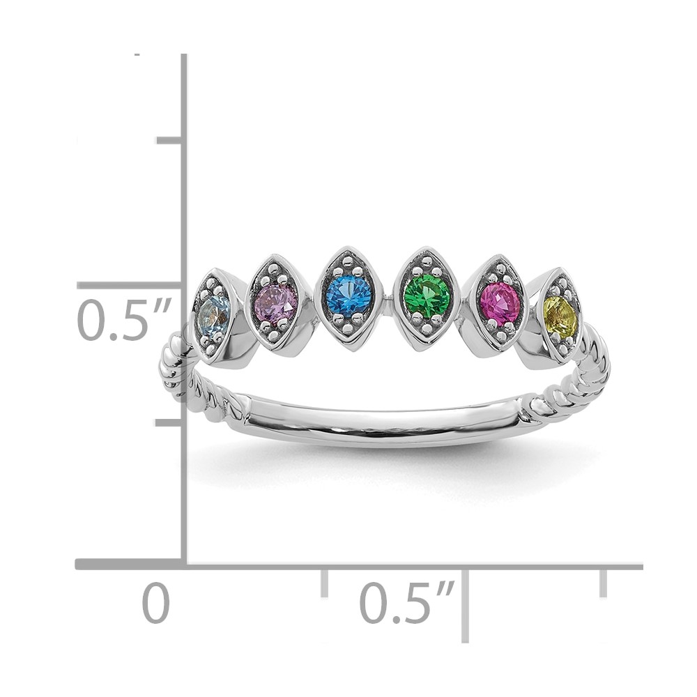 14k White Gold 6 Genuine Birthstone Mother's Ring