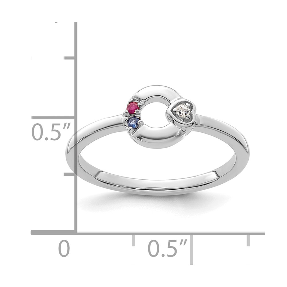 14k WG Dia. Heart with 2 Genuine Birthstone Mother's Circle Ring