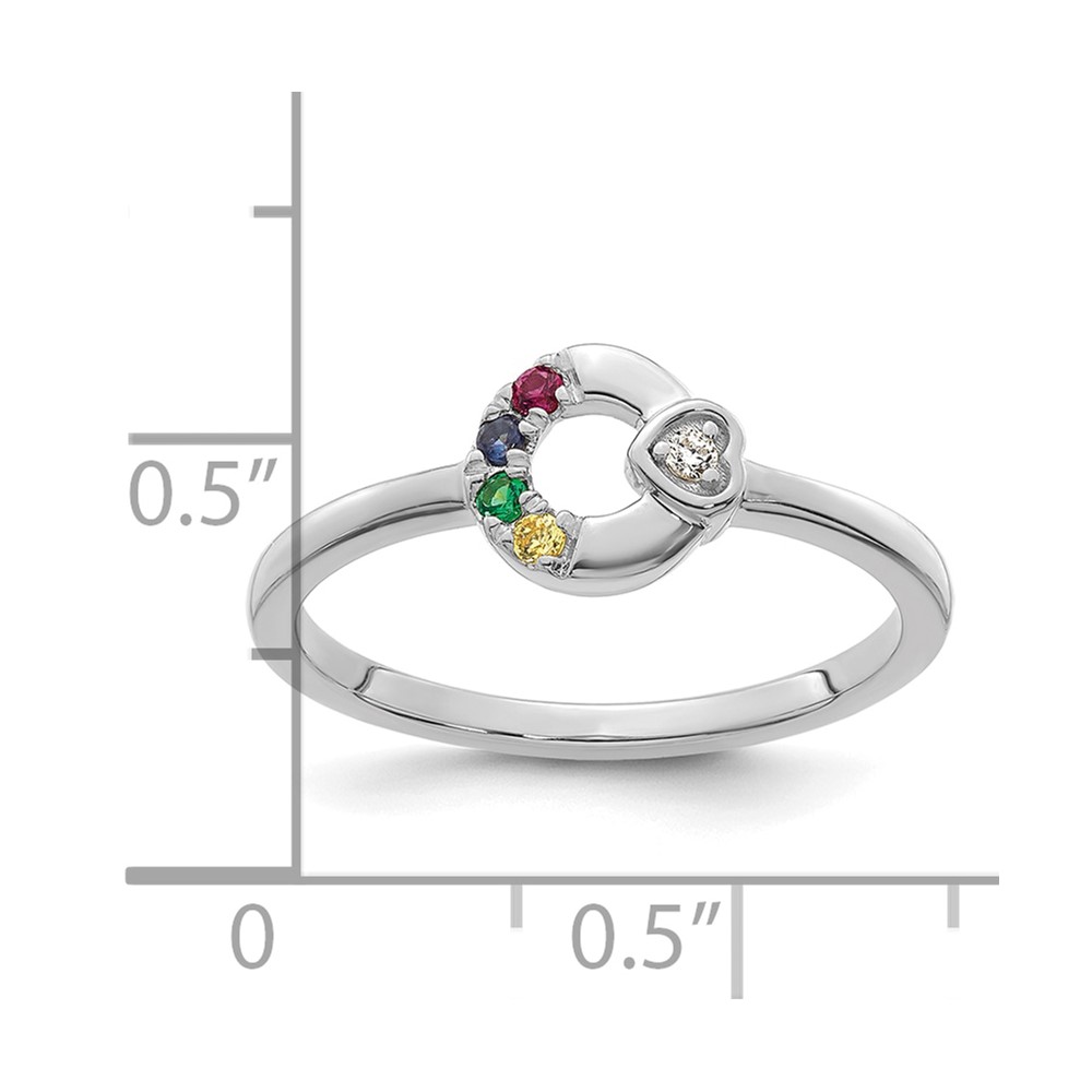 14k WG Dia. Heart w/ 4 Genuine Birthstone Mother's Circle Ring