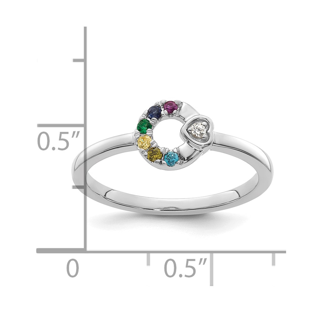 14k WG Dia. Heart with 6 Genuine Birthstone Mother's Circle Ring