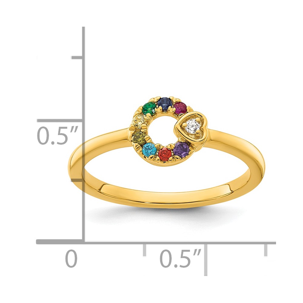 14k Diamond Heart with Genuine 8 Birthstone Mother's Circle Ring