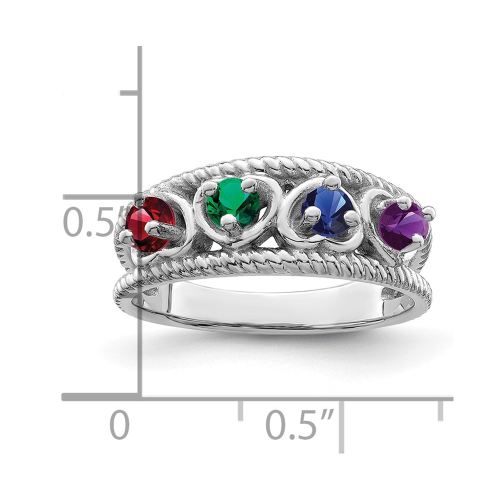 Sterling Silver Rhodium-plated Synthetic Family Jewelry Ring