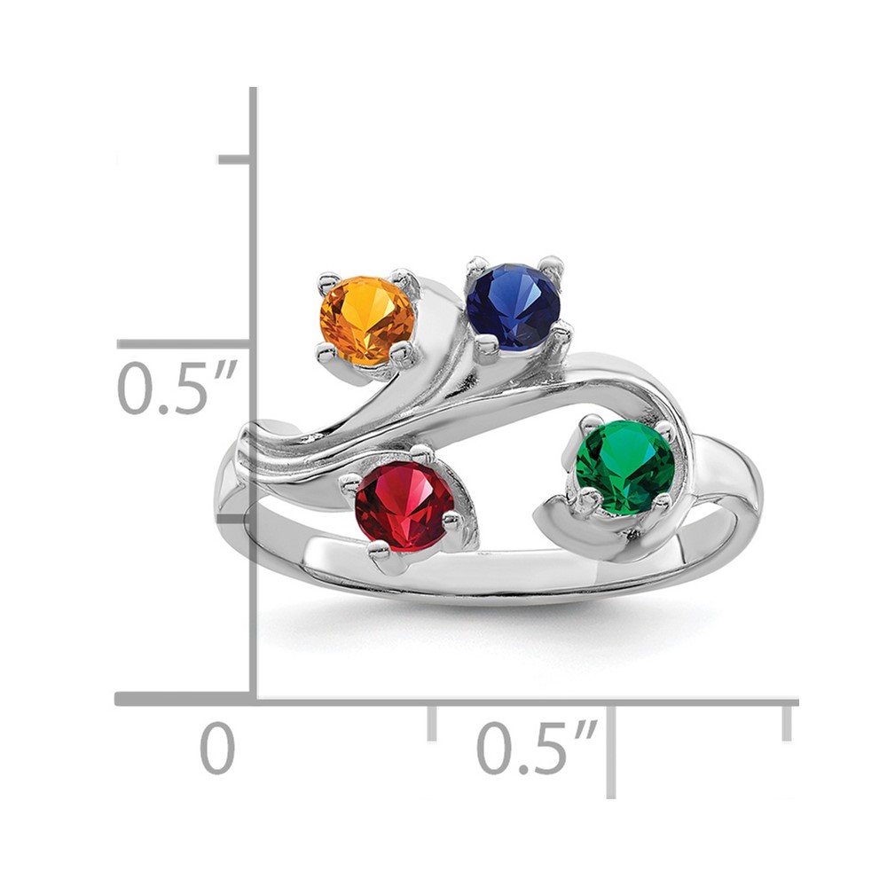 Sterling Silver Rhodium-plated Synthetic 4 Stone Mother's Ring