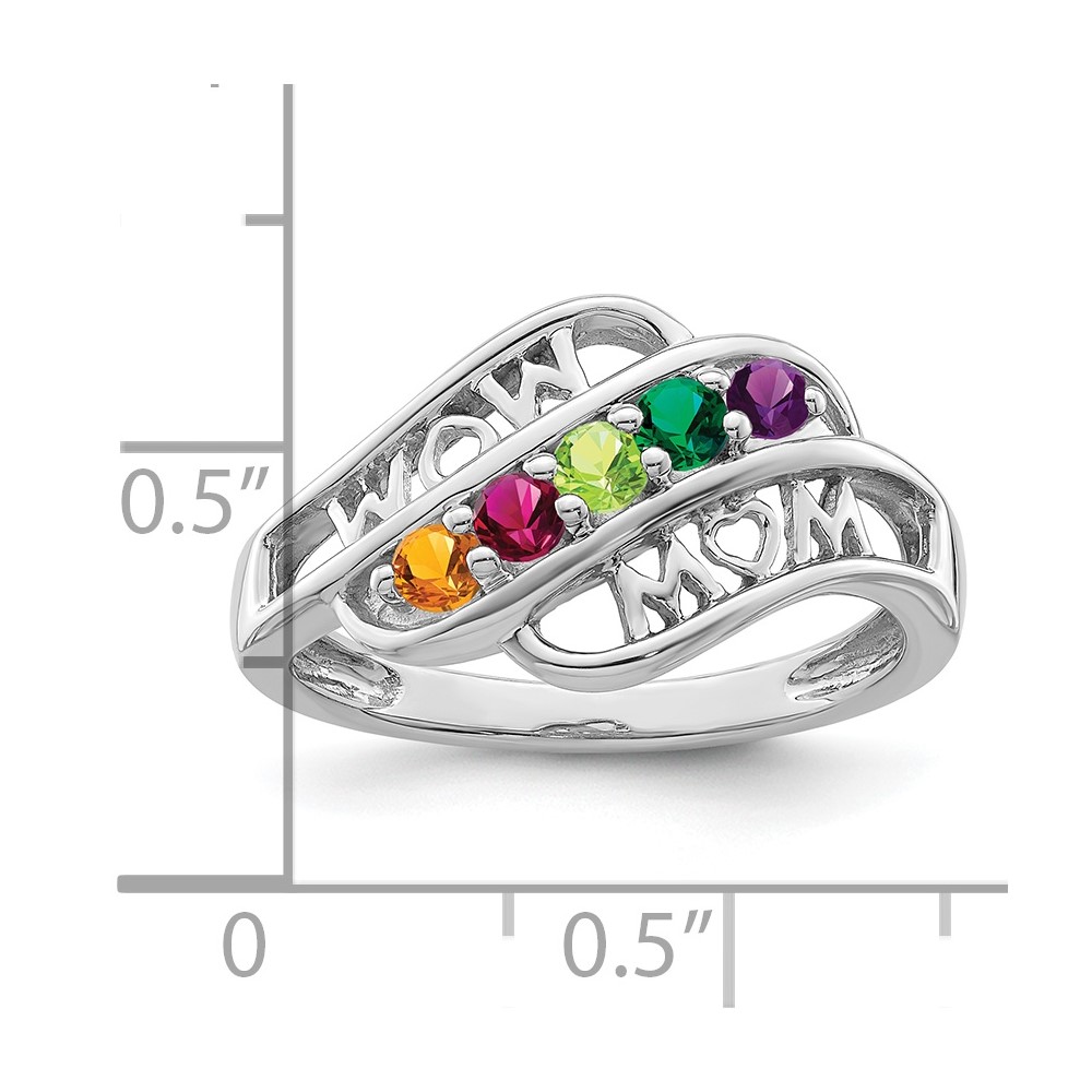 Sterling Silver Rhodium-plated Synthetic Family Jewelry Ring