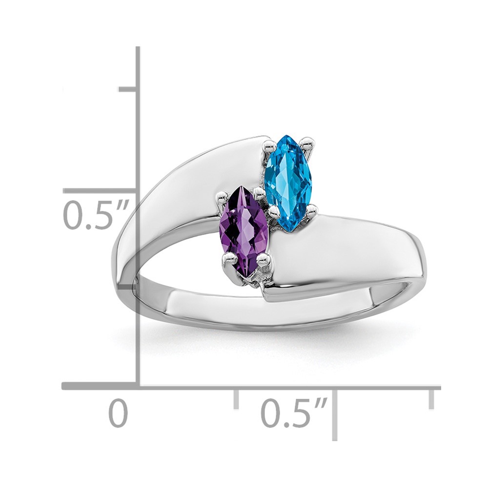 Sterling Silver Rhodium-plated Synthetic 2 Stone Mother's Ring