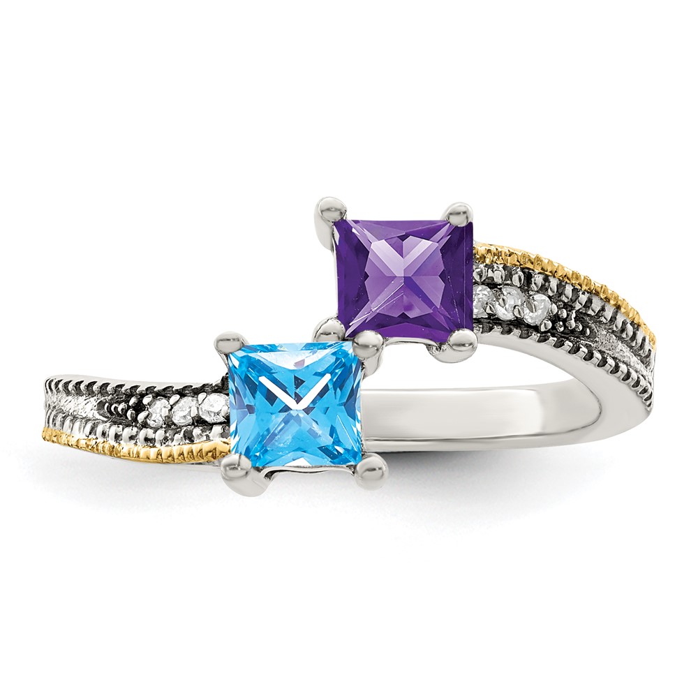 Sterling Silver & 14k Birthstone and Diamond Mother's Semi-Mount Ring