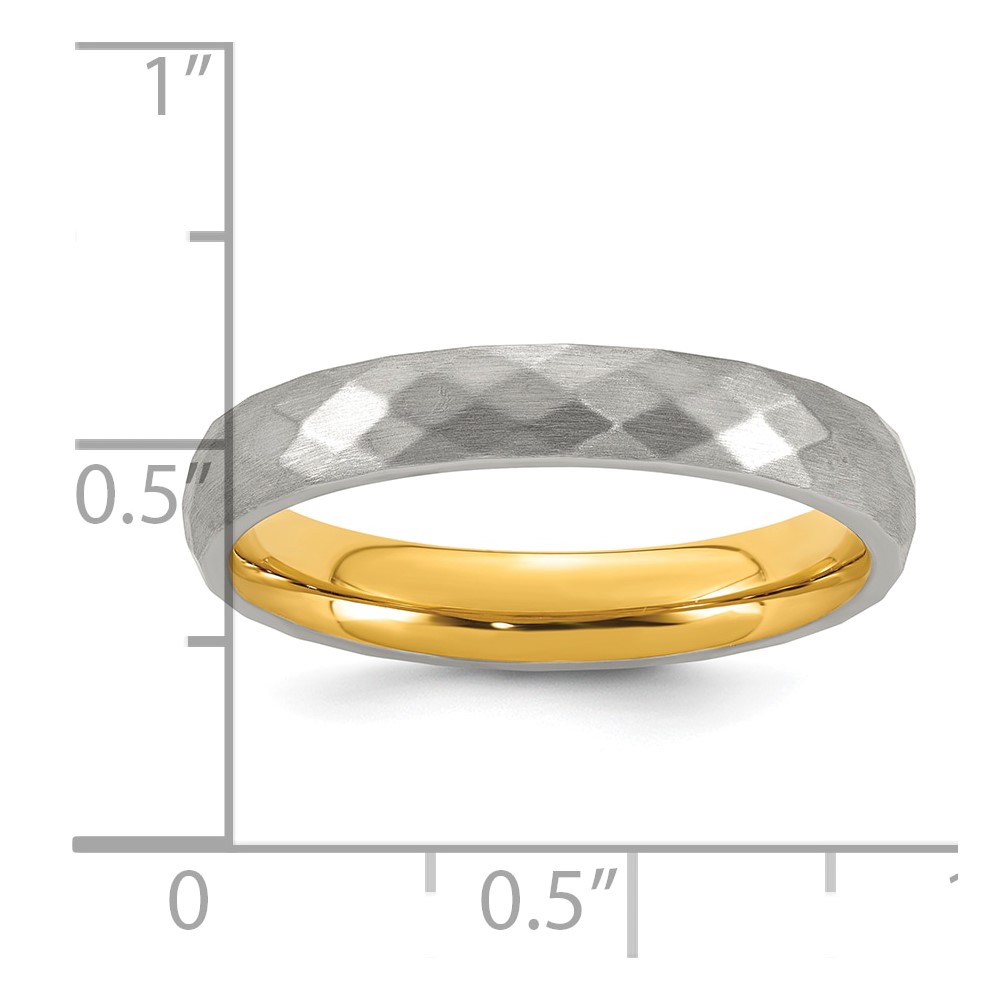 Stainless Steel Polished and Brushed Yellow IP-plated Faceted Ring