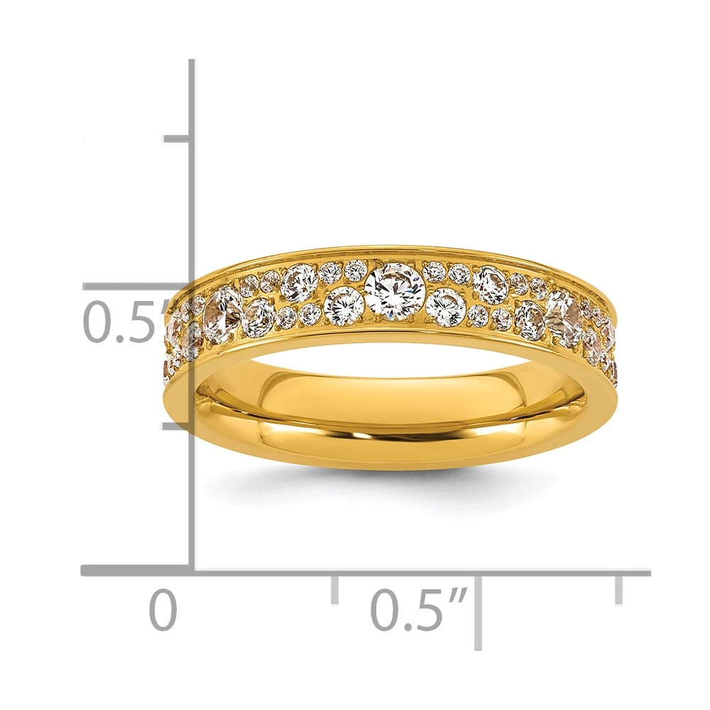 Stainless Steel Polished Yellow IP-plated CZ 4.5mm Ring