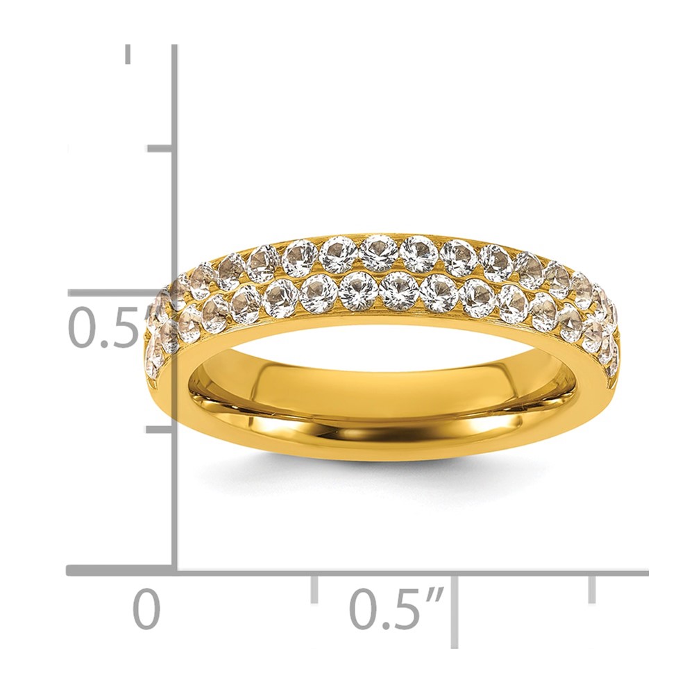 Stainless Steel Polished Yellow IP-plated 4mm CZ Ring