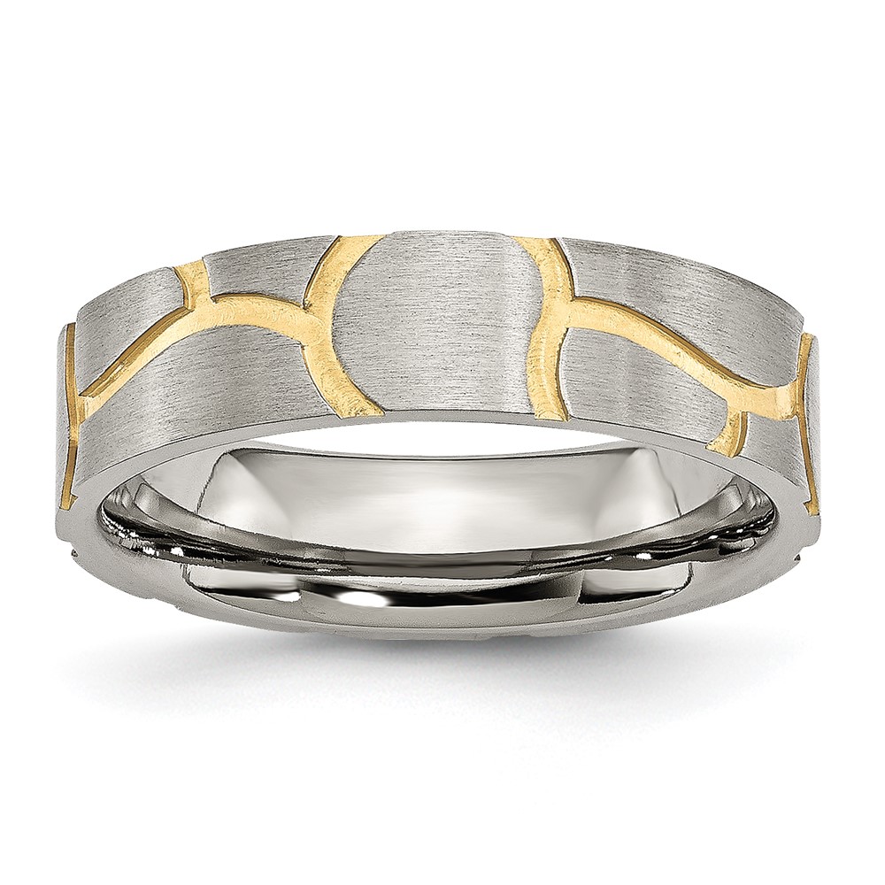 Stainless Steel Brushed Yellow IP-plated 6mm Grooved Band