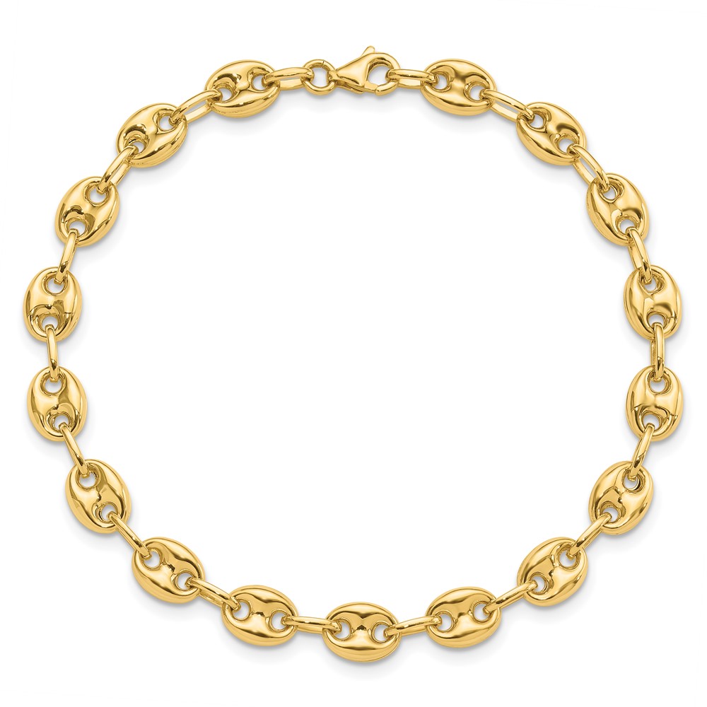 14K Polished 6.3mm Puffed Anchor/Mariner Link 7.75 inch Bracelet
