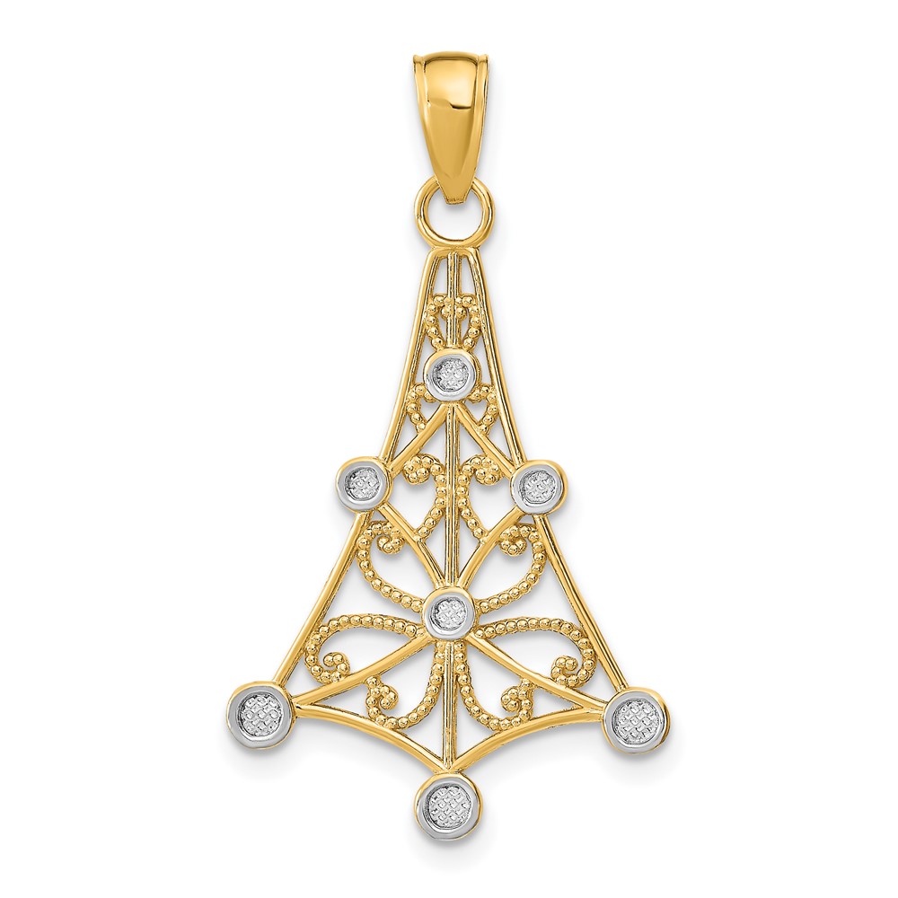 14k and White Rhodium Textured Chandelier Charm